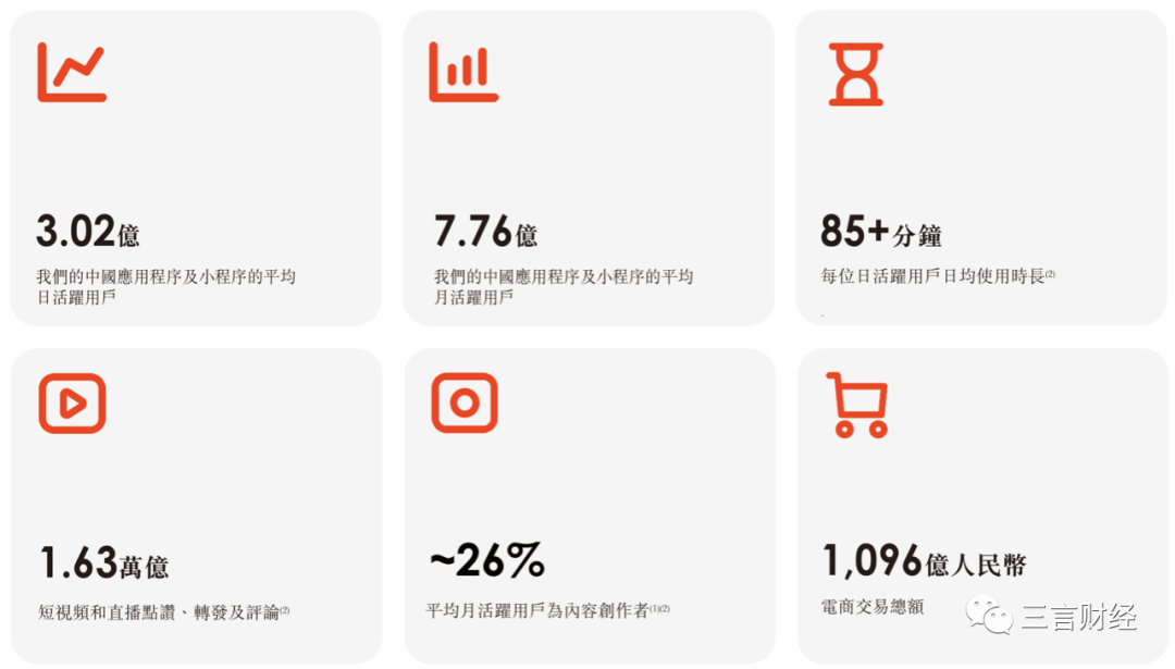 在同一期间内,每位日活跃用户日均使用时长超过85分钟;短视频和直播点赞、转发及评论数达1.63万亿次;有26%的用户是平均月活跃用户同时为内容创作者;此外,快手电商GMV达到1096亿元。