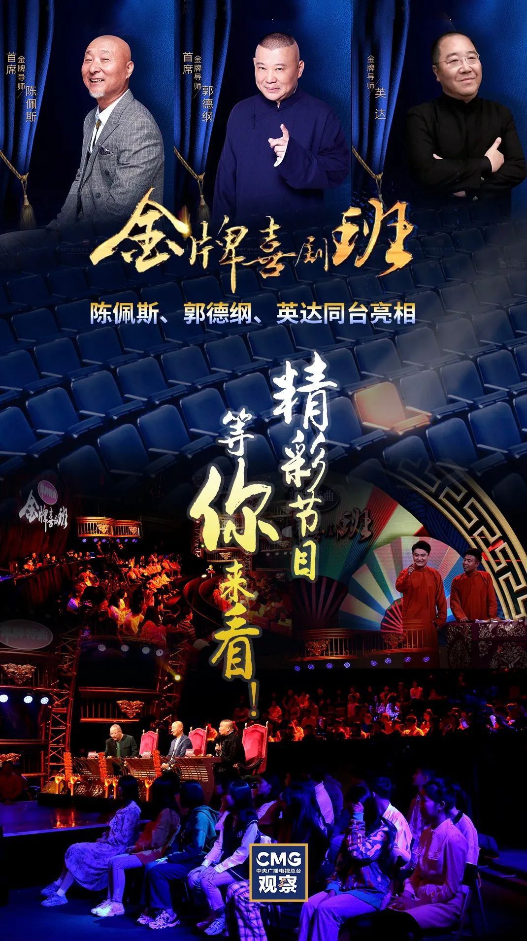 以此为支点,节目邀请了小品界泰斗级人物陈佩斯、相声界杠把子郭德纲,还有曾经执导过多部经典情景喜剧的导演英达坐镇。和市面上大多数竞演类、选秀类综艺一样,他们扛起了节目最初的话题KPI,也拉高了观众对节目的期待值。“把这三位凑齐,也是难得了”,社交平台上诸如此类的感慨不在少数。
