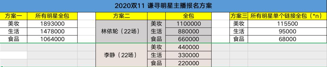 2020双11谦寻机构主播报价表 来源 / 受访者供图