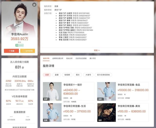 一位宠物品类商家告诉深燃,“李佳琦的招商价格不太透明,有很多招商在外面疯狂BD,价格也都不一致,去年双十二前后,给我的类目报价是8万,今年估计还会涨。”据阿里V任务数据,李佳琦今年的双11坑位费最低是4万。