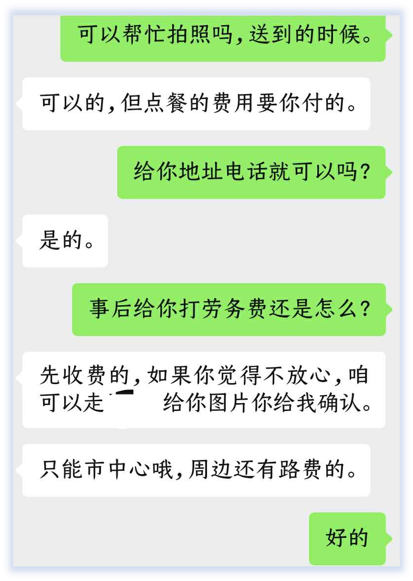 对于闪送、外卖小哥而言,相比平时将“物品”送达收件用户手中的常态,这类发件人希望在送快餐或送快件时帮忙看一下收货方长相、身材、年龄情况,甚至当时心情如何的奇怪要求,也是一种乐趣。