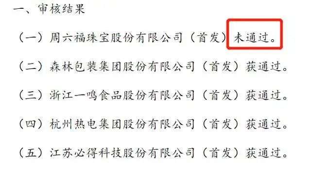 今年10月,在发起A股IPO冲刺近一年后,证监会发布审核名录,周六福上市申请被否决。
