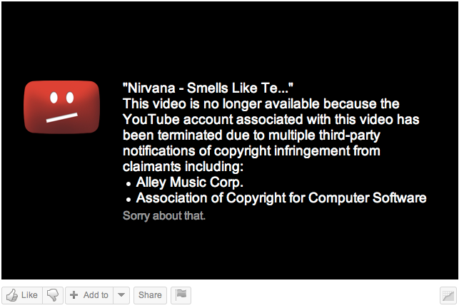 当版权所有者向YouTube方面提交了有效的法律申请,这些涉嫌侵权的视频就会被YouTube删除。更严重的是,如果一个账号收到了三次版权警告,账号就会被删除。