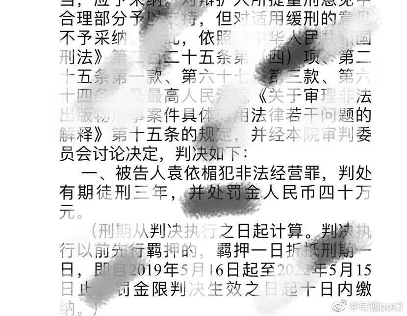 11月10日,中国裁判文书网发布《杨旸、袁依楣非法经营一审刑事判决书》,正面印证了网传晋江知名写手袁依楣(笔名:墨香铜臭)涉嫌非法经营而获罪入狱的传闻。