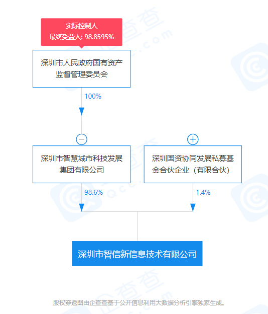 根据工商资料显示,收购方深圳智信新信息技术有限公司的大股东是深圳国资委全资控股的深圳智慧城市技发展集团,小股东的背后也是深圳国资背景,和此前传言的“国资入场”相一致。