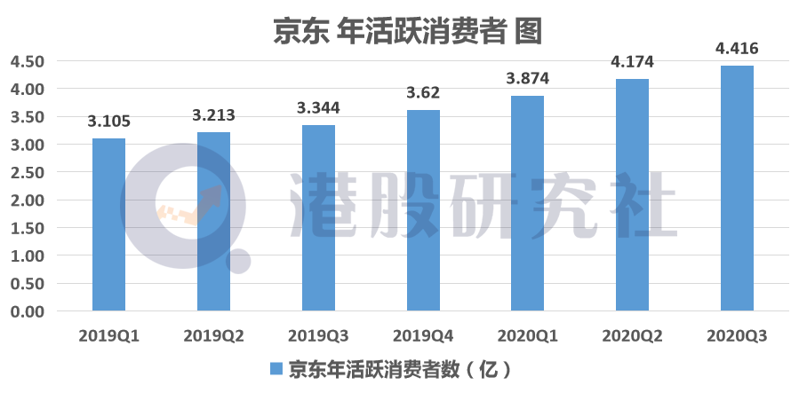 除了交出了一份相对漂亮的营收数据以外,在第三季度,京东的年活跃买家数量进一步提升至4.416亿,同比增长32.1%,增速刷新了三年以来新高,继续向着5亿大关大幅迈进。