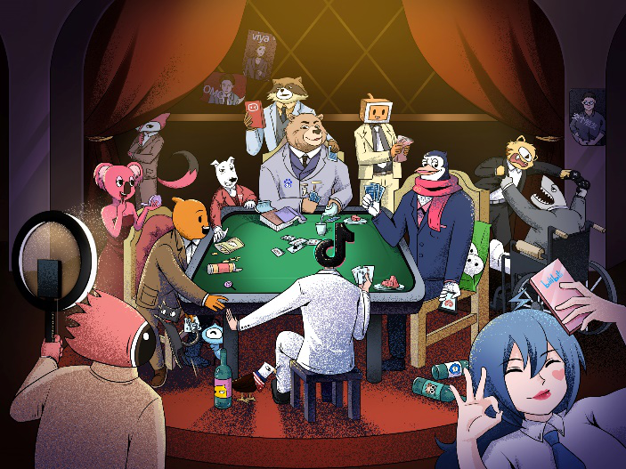 现在你将扮演抖音先生,牌桌上唯一的15后。作为腾讯的邻居,你骑共享单车到鹅酱的希格玛大厦不超过20分钟——但你是一个吵闹的邻居,作为新兴的互联网企业,借着短视频的东风,你迅速成为国内最有影响力的短视频内容平台之一,坐拥4亿月活——这让你成为了整个街区嫉妒的对象。