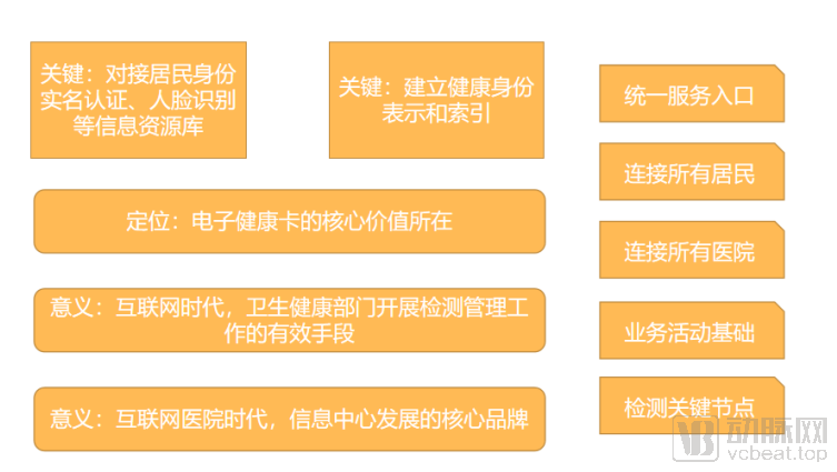 通过电子健康卡推动三医联动,关键的环节在于身份认证。因此,卫健委系统将居民电子健康卡的定位成为居民健康身份的统一标识以及居民健康信息的统一所有。要实现这样的定位,这既需要卫健委与公安的身份库进行对接,又需要卫健委建立居民健康表示。标识的建设是打好整个体系的关键所在。
