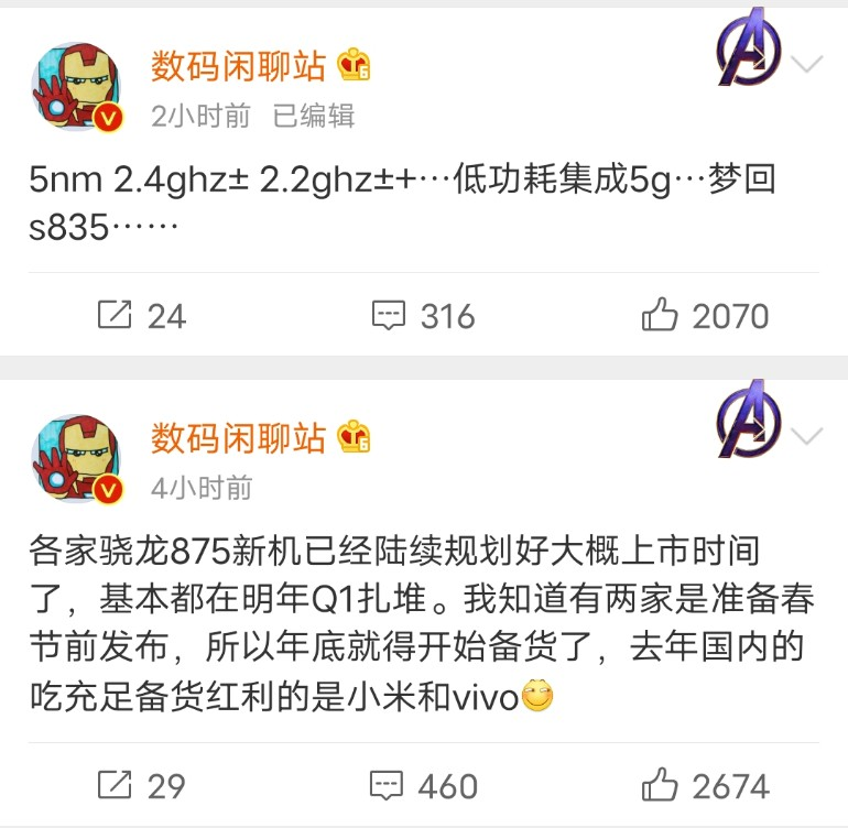 但和往年不同的是,用户不用再苦等那些搭载骁龙875的手机两个月,它们很可能在年末就会发布:根据知名播主@数码闲聊站的消息,各大手机品牌都已经做好了第一手跟进的准备。