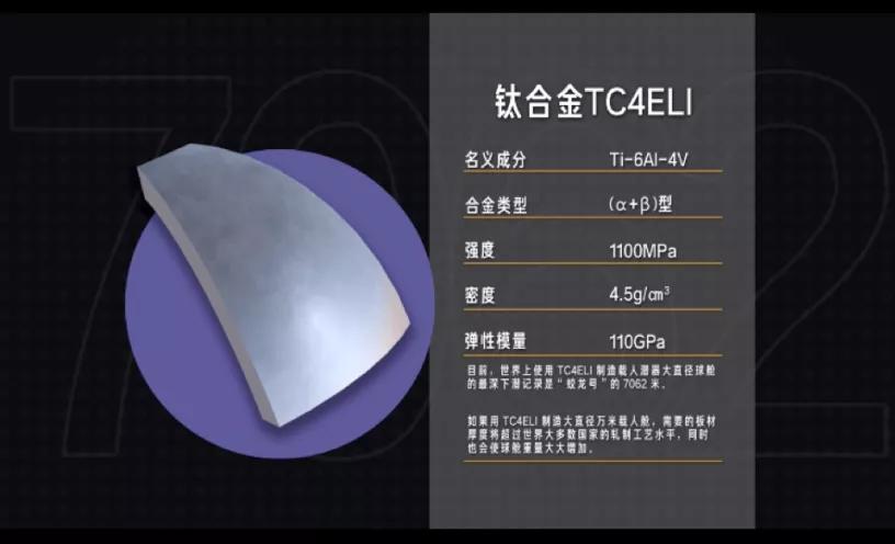 美国海军的“海崖”号深潜器使用钛合金作耐压壳材料,该潜器下潜深度为6100m。法国1985年研制成的“鹦鹉螺”号潜水器最大下潜深度6000米,累计下潜了1500多次,完成过多金属结合区域,深海海底生态等调查,以及沉船、有害废料等搜索任务。