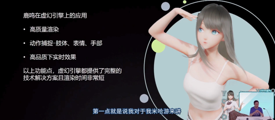 具体来说,鹿鸣应用了虚幻引擎提供的高质量渲染、动作捕捉(肢体、表情、手部)以及高品质下实时效果等技术解决方案。
