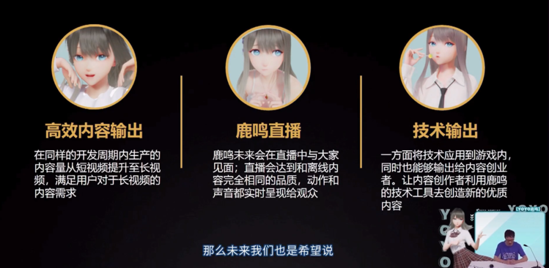 后续米哈游将从“高效内容输出”、“鹿鸣直播”、“技术输出”等方面最大化鹿鸣项目的效用,实现米哈游在内容创作上的全面升级。