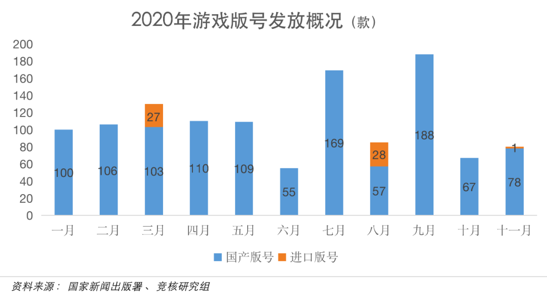 从平均数来看,截至目前,2020年月平均发放版号数约为109款,低于2019年的平均数131款。