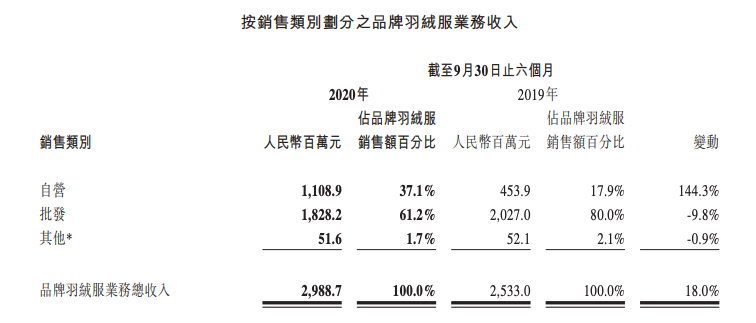 在订单管理方面,波司登延续了直营和批发订货完全分开的做法,根据不同模式、不同门店的销售节奏来进行下单和生产,从而优化成本结构以及库存周转效率。截至9月底的六个月时间里,波司登品牌羽绒服业务的自营销售收入同比大涨144.3%,占品牌羽绒服业务总收入的比例从去年同期的17.9%上升到了37.1%。