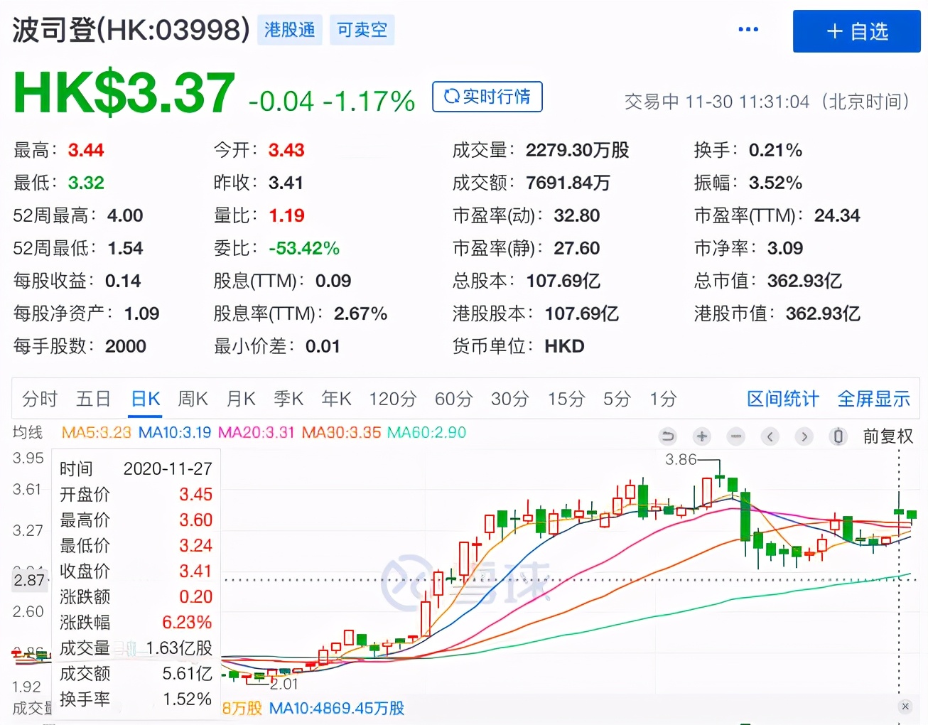 由于业绩超预期,资本市场很快就给了积极反馈。事实上,从今年9月开始,波司登在资本市场的表现就已经有了明显起势。