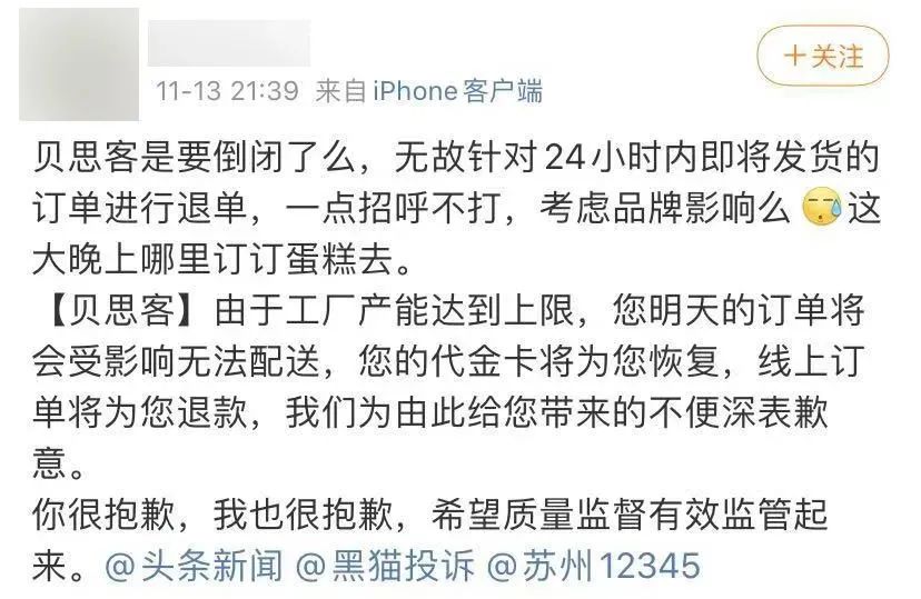 此外,蛋糕的一大消费场景是生日聚会,相对较低频次的消费决定了这一品类的高客单价。一线城市多见的下午茶,蛋糕仅是选项之一。线下门店年年上涨的房租和原料等成本,一再拉高蛋糕的消费门槛。假若再在品控上出现差错(类似的问题经常发生),口碑将大打折扣。