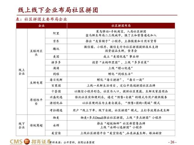 - 从消费习惯来看,不论有没有社区团购,消费者天然会追求更高效、更高性价比的消费模式,比如,目前社交团购有很多中年人(妈妈级)用户等;习惯菜市场模式的另一类消费群体也会习惯依赖传统菜市场,大超市。