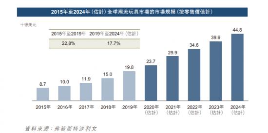 先看增量市场,招股书提及整个“潮玩”市场还在持续增长,预计到了2024年,能达到448亿美元的估值。