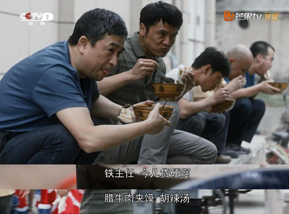 美食家陈晓卿曾在某访谈节目上分享,旧社会“绑票儿”的绑匪,如何通过观察被绑者吃鱼的步骤、细节,延伸判断这个被绑架的人家境如何、是否受宠。小老百姓的日常生活离不开老婆孩子,更离不开吃喝拉撒。《装台》里就有一个从来都舍不得在外面买早饭的“大雀儿”,蹬着三轮车有一把子蛮力,擅长干体力活却在嘴巴上“不甚讲究”。然而,等到一贯抠搜的铁主任掏腰包请大家吃饭时,他其实也是个能一口气吃俩肉夹馍再喝碗胡辣汤溜缝的“大饭量”。