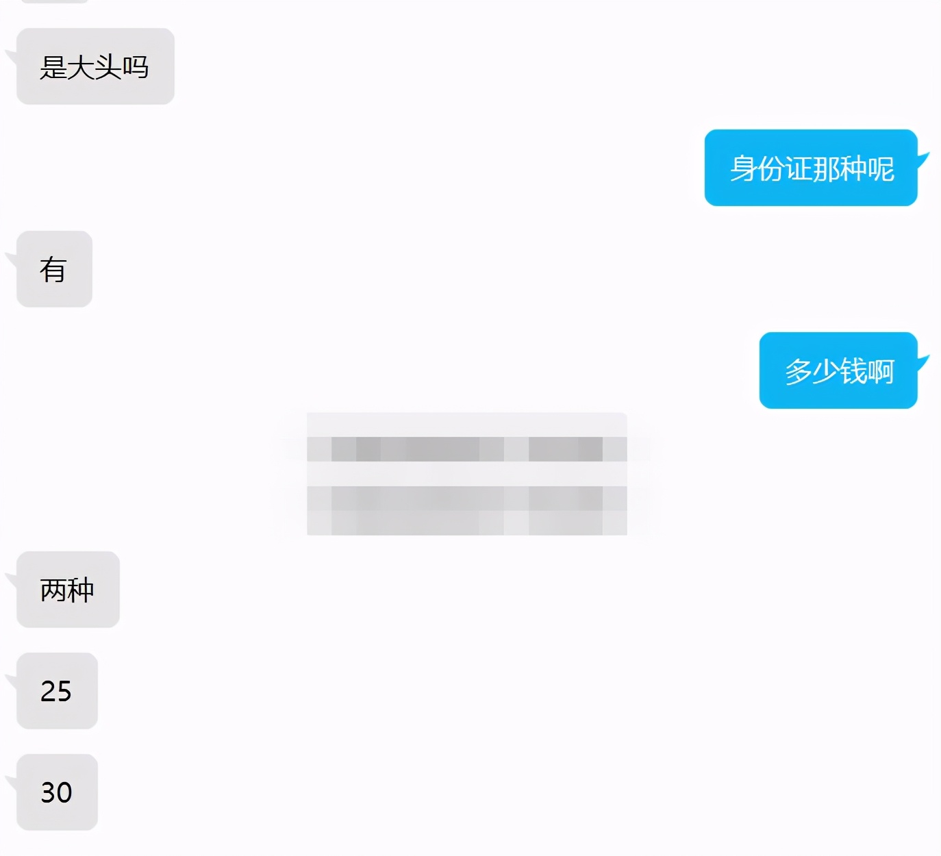 对于这个定价,对方解释道,以前那些便宜的5毛钱一张的,都被人脸识别过多次了,根本过不了,而他提供的是“最新的”,价格贵一些。