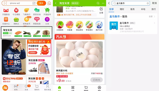 淘宝、支付宝导流盒马集市;图片来源:零售与电商观察