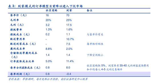 在高毛利的特点外,社区团购目前呈现出良好的可复制性。美团、橙心优选等社区团购业务在成都、济南等地区,单位人口能产生的订单量相当接近。这意味着,除去拥有相对完善的生鲜零售渠道,以及人口密度低的中西部地区,社区团购的模式可能适用于大部分下沉市场。