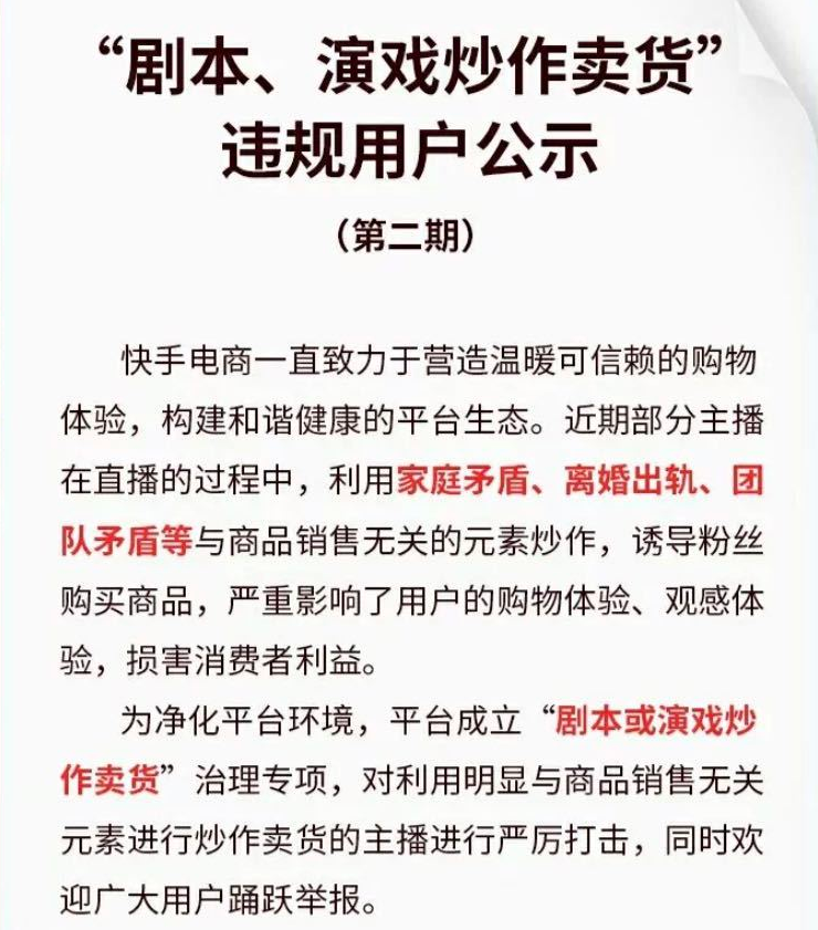 最近,快手针对“剧本、演戏炒作卖货”现象进行专项治理,处罚了一大批抖音账号,这里面不乏粉丝几百万的大V。
