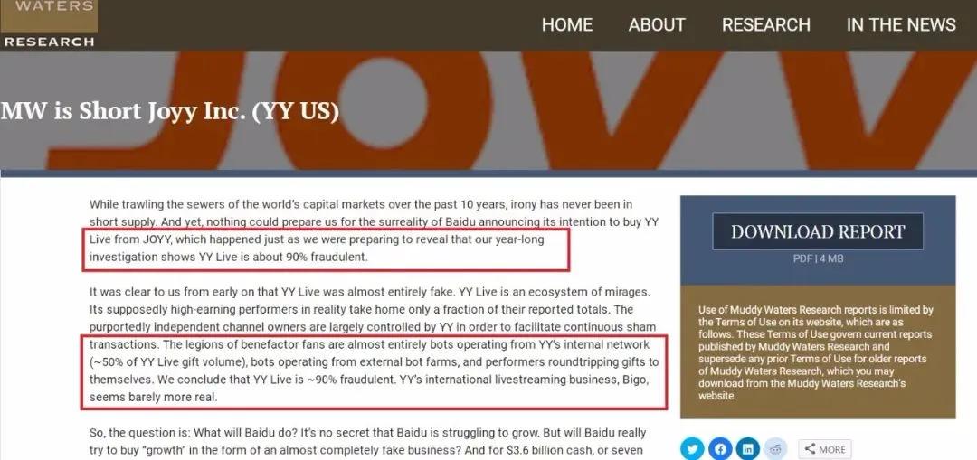此外,数据造假、刷单、天价坑位费等问题也对部分品牌方造成劝退。最近一次相关曝光是11月底,浑水宣布YY直播大约90%数据存在欺诈,并怀疑其实际收入不及公布数据的15%。
