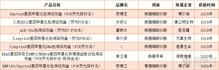 国内获批的癌症早筛产品(数据来源:国家药品监督管理局官网)
