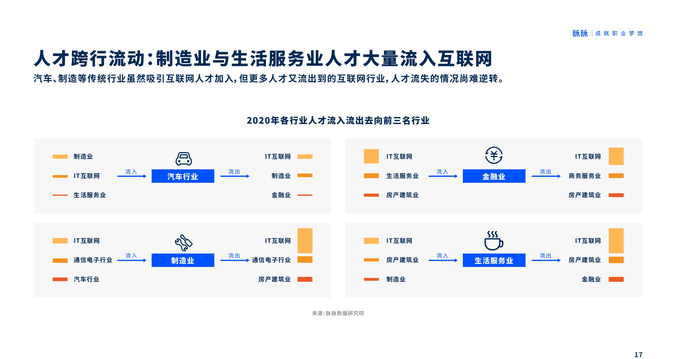 三、人才行业吸引力:服务业、制造业与金融业人才显著流出