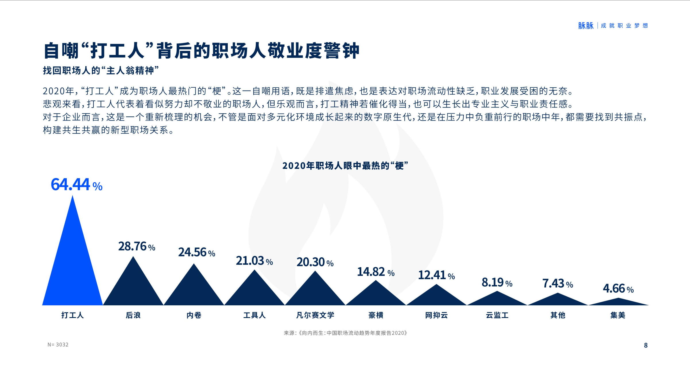 “打工人”成为2020年职场人严重最热的“梗”。这一职场热词,既是自嘲也是派遣焦虑,更敲响了员工敬业度和职场关系建设的警钟。