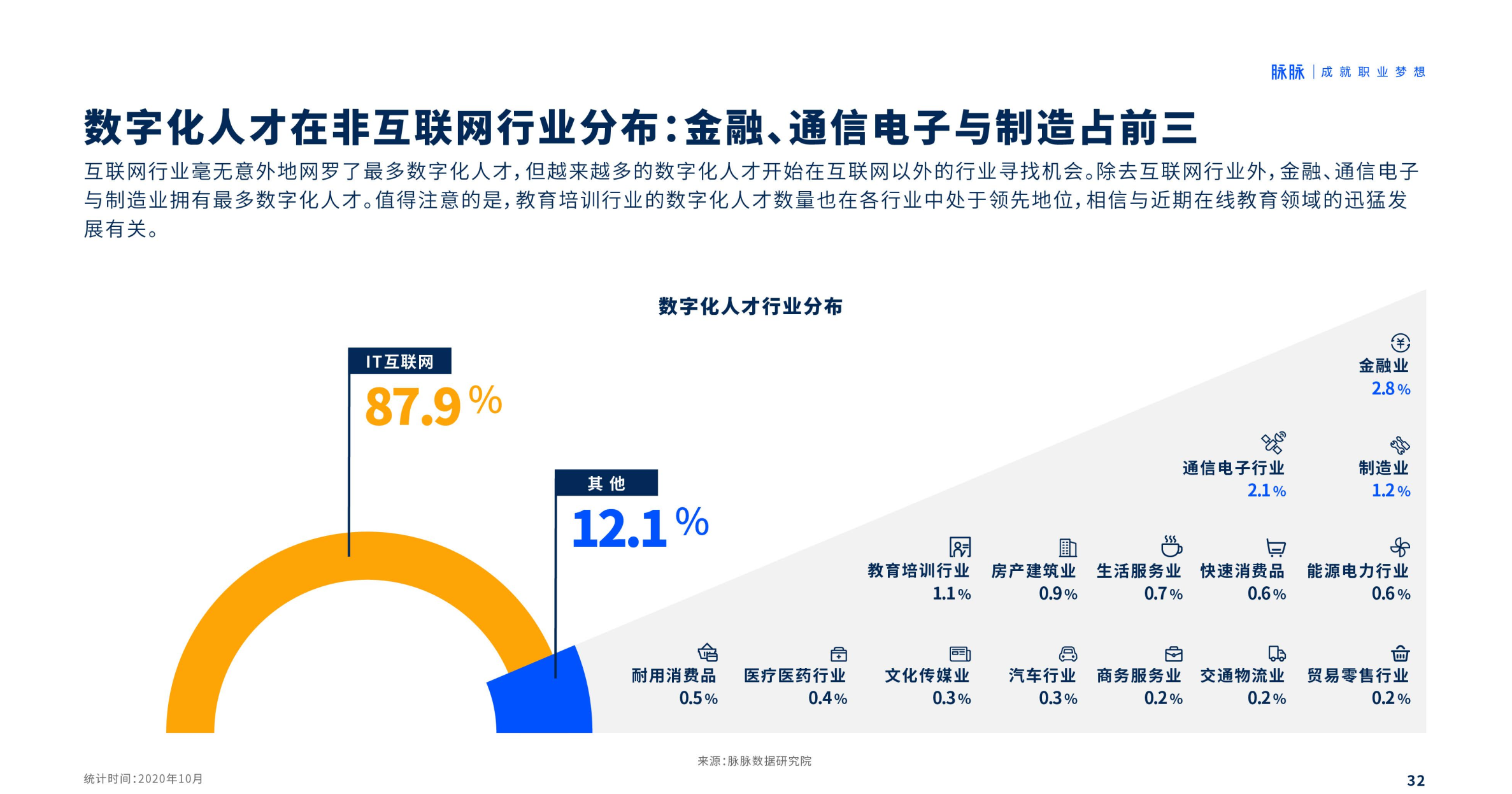 除了IT互联以外,数字化人才在金融、通信电子、制造与教育行业的人数最多,显示这些行业最为积极地拥抱数字经济。