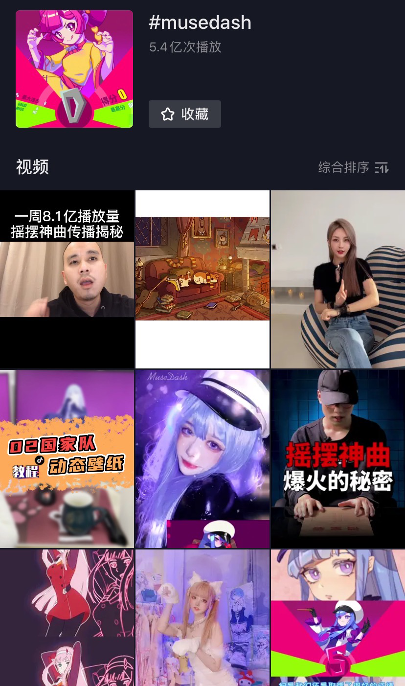 前段时间,由越南DJ创作的歌曲《Phut hon》中的一段音乐旋律,成为抖音上被用户频频拍摄效仿的“摇摆神曲”,在#phuthon#话题下的视频获得超过1.5亿次播放,并进一步推进了一款名为《MuseDash》(中文名称《喵斯快跑》)的音乐手游翻红。#Musedash#话题下的短视频获得了5.4亿次播放,在刚推出的一周时间内,相关话题累计播放量迅速突破8亿。