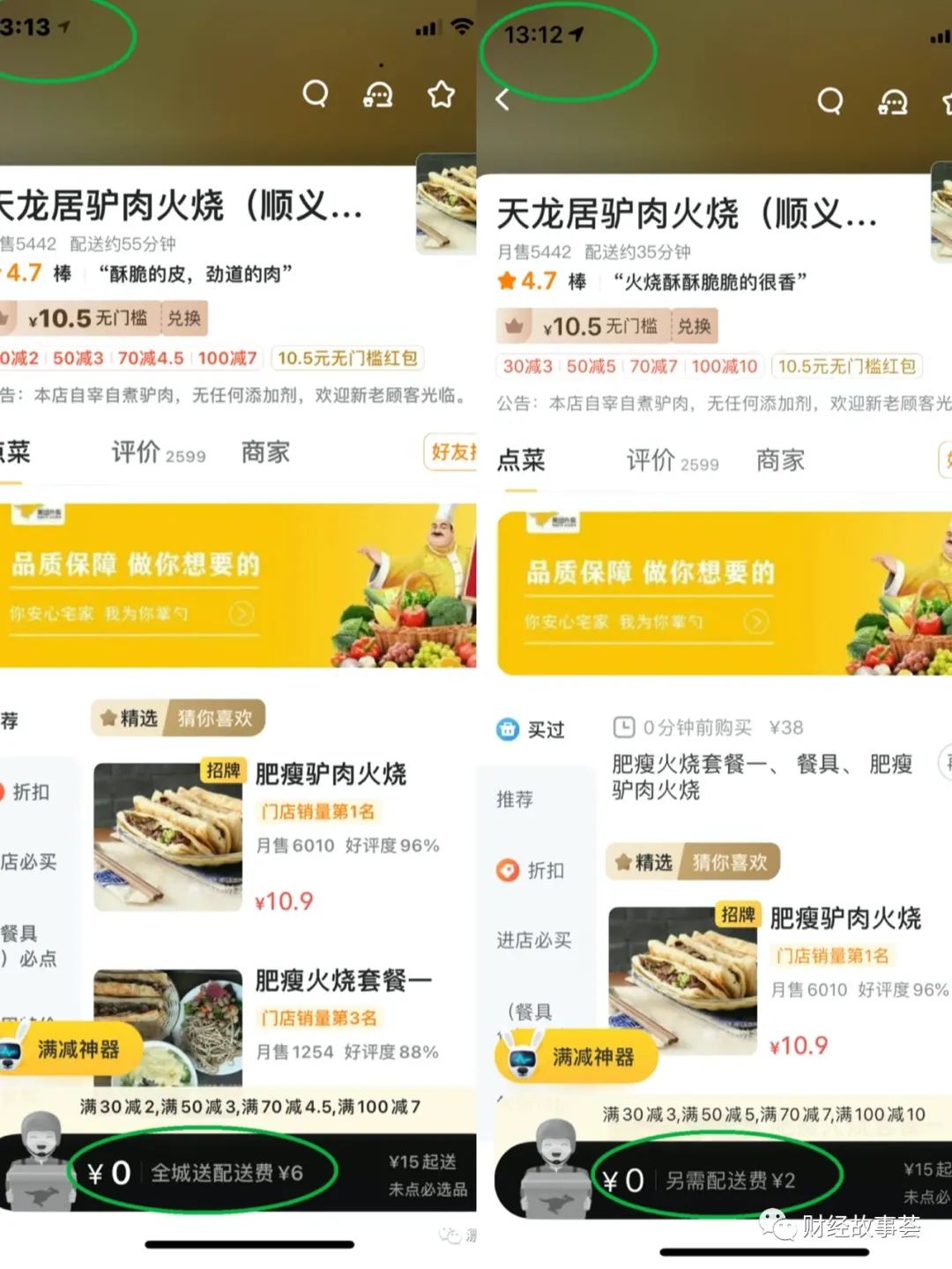 但漂移神父认为,这份声明没有解答他的疑问,作为一位从业已久的“互联网老兵”,他告诉《财经故事荟》,定位缓存仅能勉强解释12月9日的配送费差异,12月9日中午,他先在距家1.3公里之外的健身房打开了手机开通会员账号的美团APP,大概十分钟后,回到住所点餐。