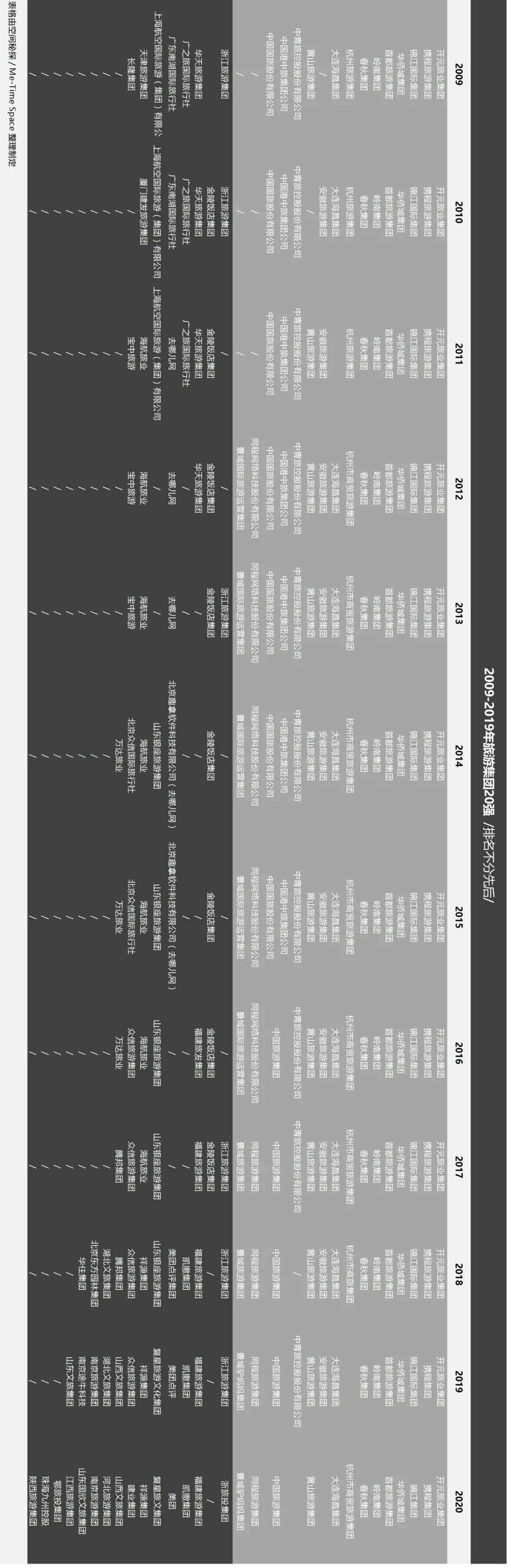 “蓄力一纪,可以远矣”,古人以12年为一纪,一纪的积攒,方能行得远。若我们细细琢磨每年更迭的榜单,或许能从20强的进与出中,见证那些优秀且伟大的旅游集团的危机与困境,以及成长与成熟的历程。