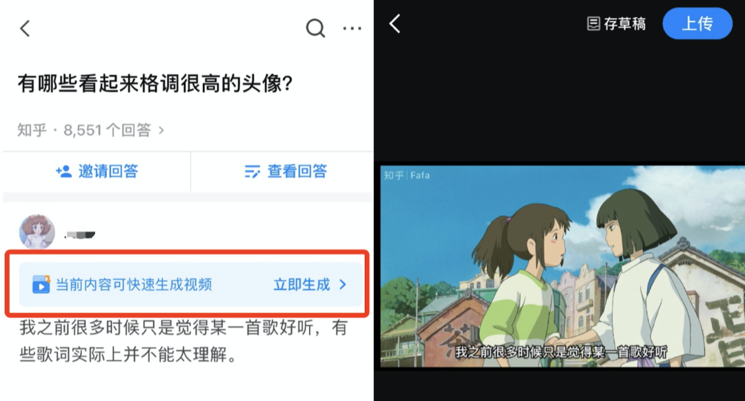 知乎也推出了一系列以视频为载体的 PGC 节目,如《职人介绍所》,也有郎朗钢琴课等付费视频课程。不过近期最值得一提的,还是知乎推出的将文字答案一键转视频的功能。这方便了非常多的文字创作者。