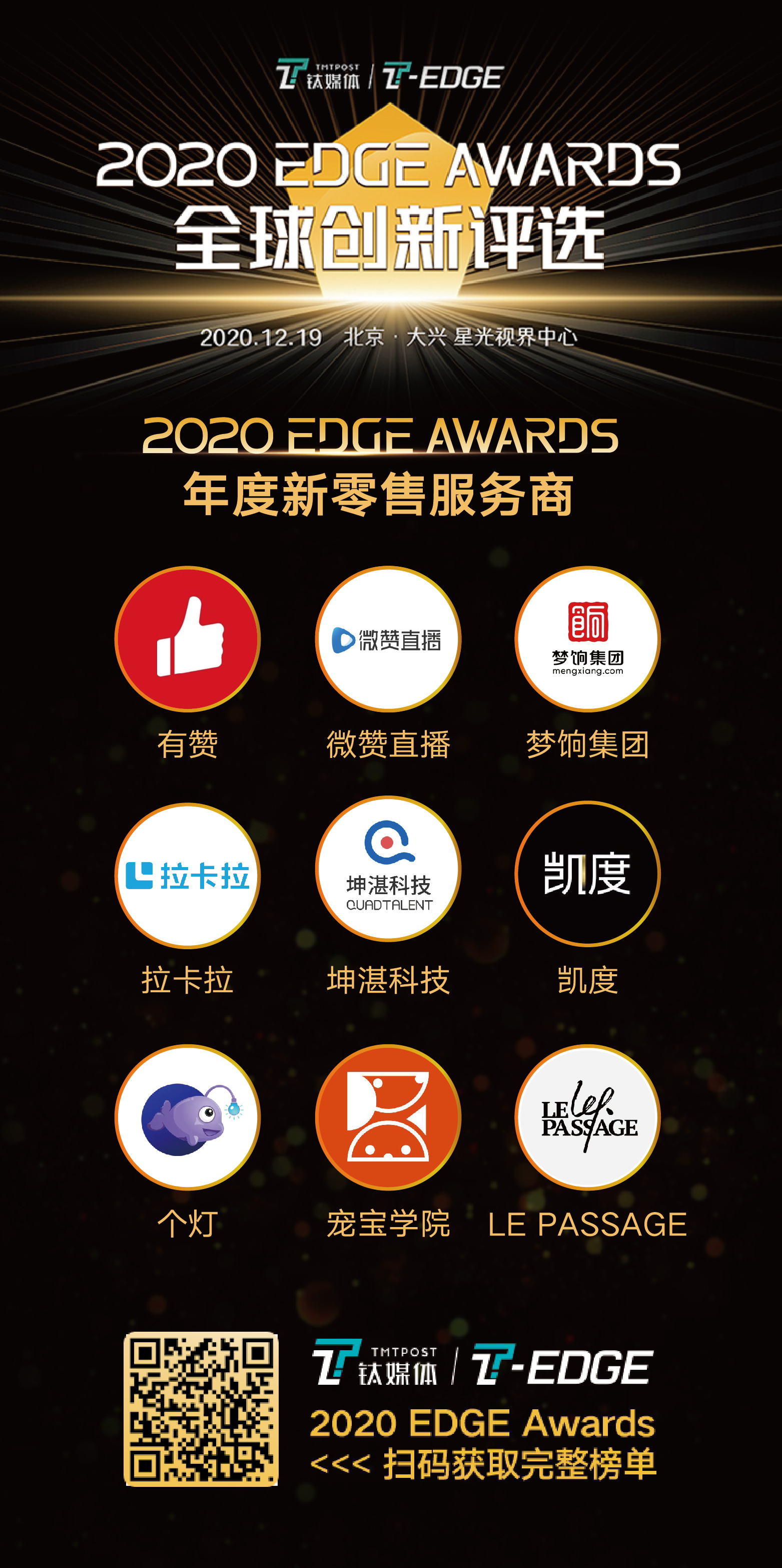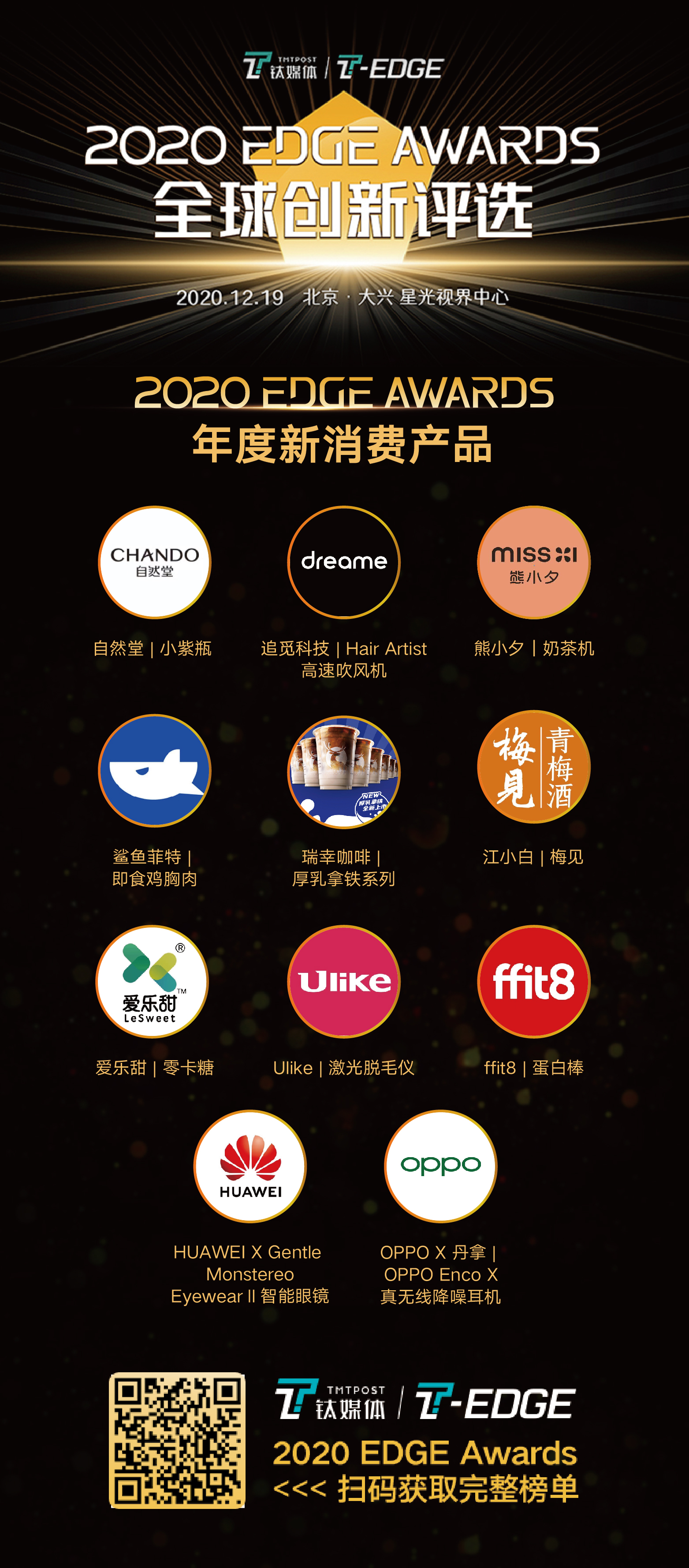 钛媒体2020 EDGE TOP 50 「新消费类六大奖项」的最终评选结果,已经在12月19日举办的钛媒体2020 EDGE Awards颁奖盛典晚宴上揭榜。