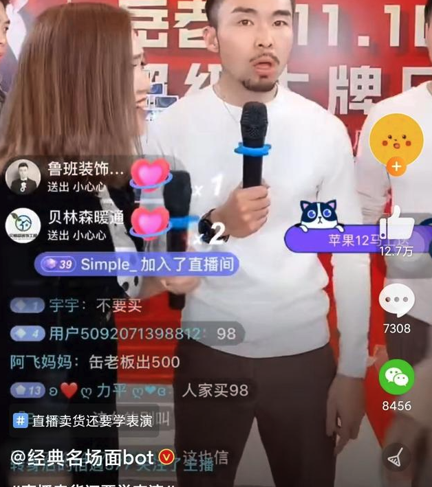 好一个“家人”:从辛巴不会给家人卖糖水、到岳老板和女助理决定赔钱补贴家人们的感情大戏,如今的直播间已经不再是简单的销售渠道线上化,而是各种剧本的表演舞台了。就像之前花儿街林默同学对辛巴的那句点评:“辛有志不会错过任何一个剧本。”
