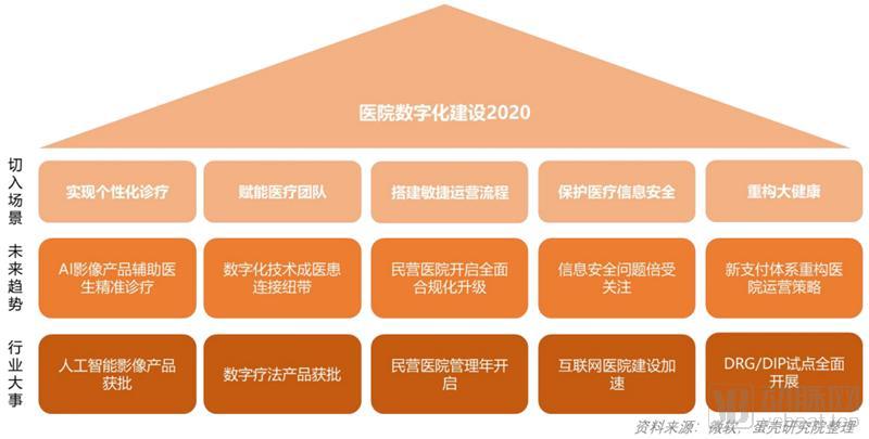2020年,医疗健康行业随着新冠疫情的发生,来到了视线的中央。人们对于医院的关注点集中在了医护人员在抗击疫情中做出的贡献,和疫情隔离期间医院的生存问题。但实际上,除了疫情之外,医院的数字化建设进程始终没有停滞。在此,我们整理了2020年影响医院数字化建设的五大关键事件,以及事件将引导的未来趋势。
