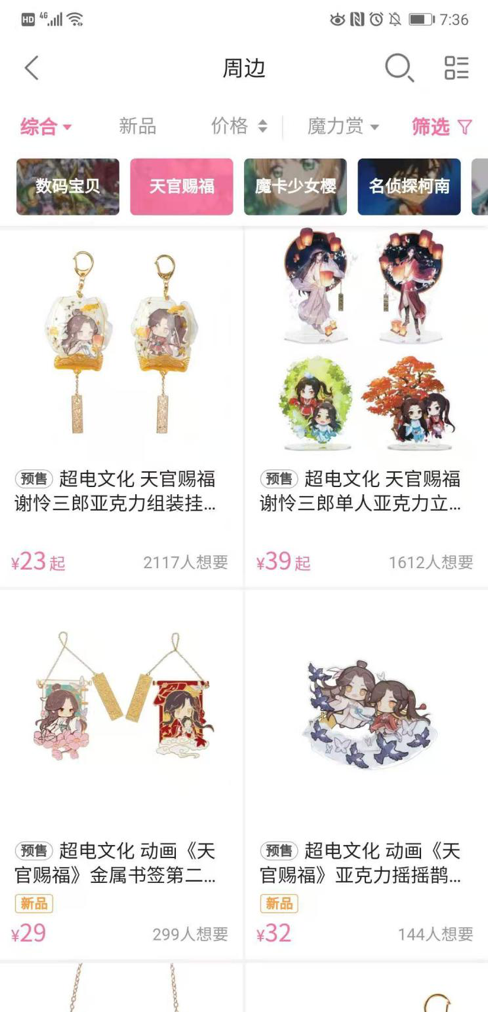 然而B站所面临的困境有两个,其一是热门作品的周边售卖率较低。拿现下最火热的《天官赐福》举例,最受欢迎的周边产品售价约120元却仅有不到3000人“想要”,而其他日漫类别的手办虽高达上千元,却普遍有两三万人点了“想要”。