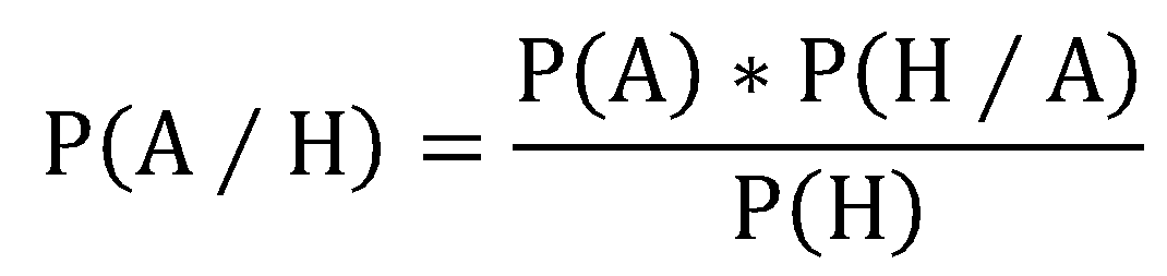 P是英文probability的简写,P(A)代表A事件发生的概率,P(A/H)代表在H发生的情况下A发生的概率。P(A)被称为先验概率,P(A/H)则被称为后验概率,上面这个公式同样可以定义成: