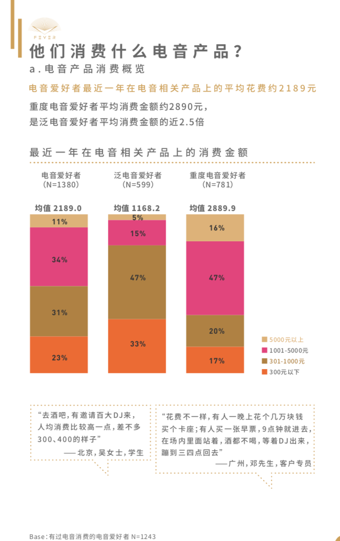 与此同时,电音爱好者的特点是年轻且具有高消费能力:平均年龄27.8岁,年均在电音相关产品上花费2189元~2890元。