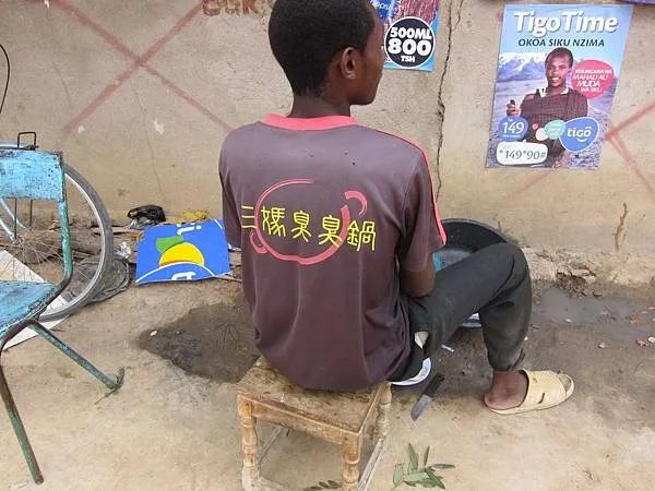 无论走到哪里,你总能看见各种中国学生的校服和中国企业的工装。中国文化通过印在这些二手衣服上面,在非洲大陆上像角马一样迁徙。