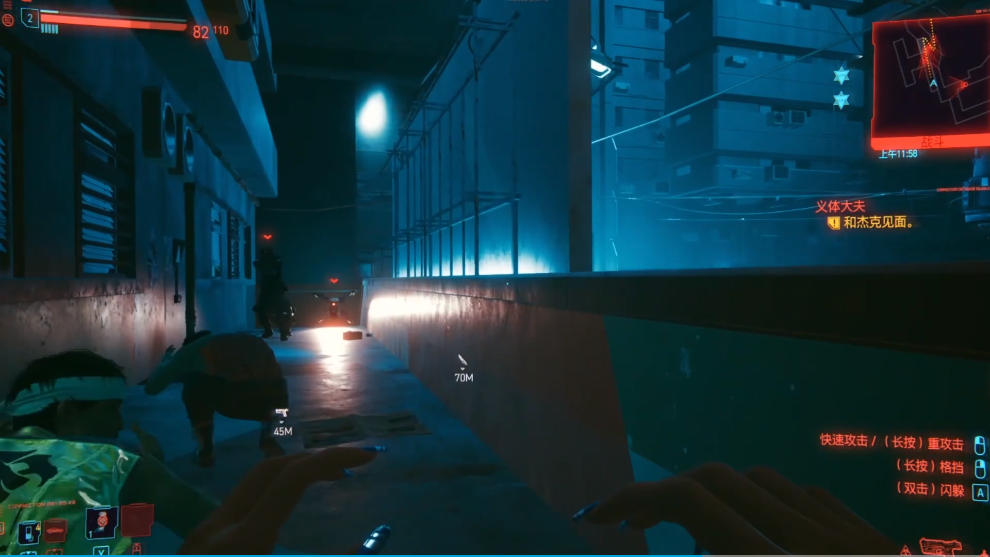 不巧的是,目前的《赛博朋克2077》还没有这样细致的运转体系,还是老一套警匪冲突框架:犯了法会遭至警方攻击,甚至没有逮捕选项。而且序章所讲的医疗会员机制,也没有好好利用起来,很多场景更像是铺设好的演出。玩家玩了几个小时都没有搞清楚,这个未来城市到底是怎么运转起来的,甚至怀疑这个城市是不是只有警察没有医疗服务。