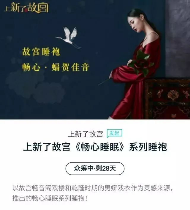 当然,故宫文创被他人侵犯合法权益的时候更多。以故宫文创为主题的综艺节目《上新了故宫》在2018年10月开播后反响很热烈,故宫方面顺势采用时髦的众筹方式推出了文创产品睡衣,然而让产权方始料未及的是,在设计图还在网络接受众筹投票时,仿款产品就已经出现。