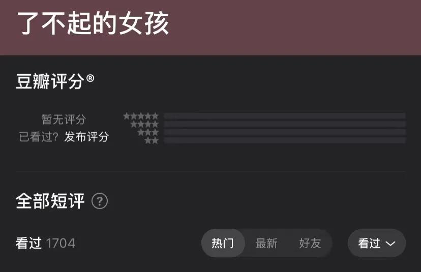 但颇感意外的是,作为“第一个吃螃蟹的人”,这部剧却并未引起太高的声量。据酷云数据显示,《了不起的女孩》自上线以来,收视率一直在0.2%左右徘徊,网播热度也不佳。截止到发稿前,豆瓣评分人数尚未突破两千。