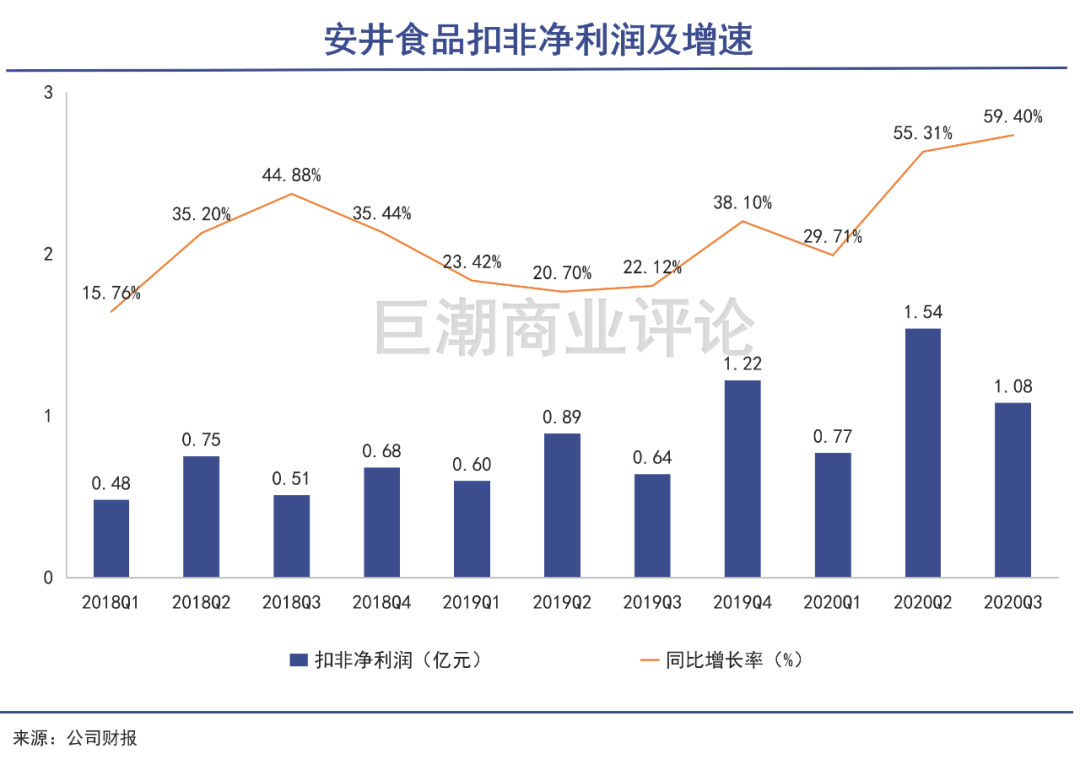 安井食品的扣非净利润,已经连续10个季度保持在20%以上的增速水平,营业收入也保持了连续6个季度在15%以上。