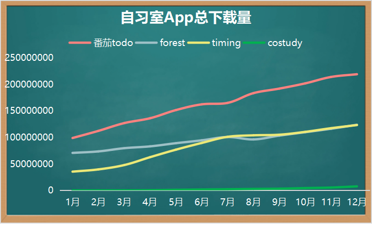 根据第三方机构酷传网监测到的数据显示,截至今年12月26日,番茄TODO的安卓端累计下载量达2.19亿,forest和timing都已经达到1.23亿,costudy为765万,前三者的年增长率分别为122%、75%、248%。