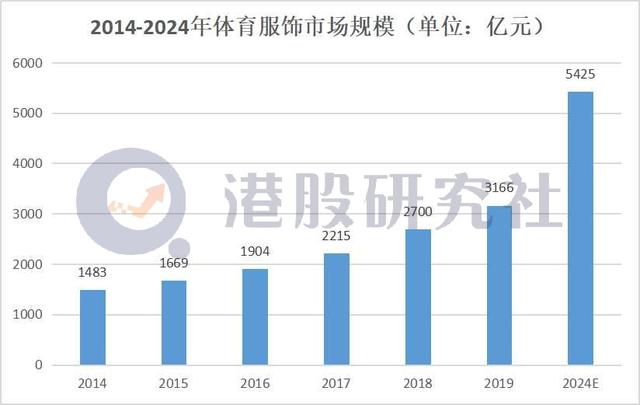 港股运动服饰板块之所以能够在服装行业整体萎靡的背景下异军突起,一方面源于消费升级的大趋势和全民健身运动的持续普及,体育服饰行业市场潜力巨大,根据欧睿国际预测,运动鞋服市场未来五年的复合年增长率达10.42%,显著高于服装行业整体增速,2023年行业规模有望达到4346.46万元。