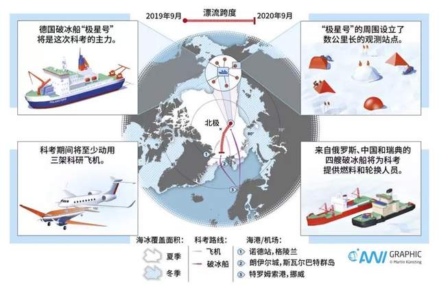 在科考启动仪式上,MOSAiC首席科学家、德国阿尔弗雷德·韦格纳研究所的马库斯·雷克斯(Markus Rex)表示,这次计划是首次在冬季测量北极中央区域的气候变化过程,可以首次全面了解整个北极区域的气候变化,并在气候模型中予以准确表达。也就是说,在科考船随冰漂流的一年中,科学家们要通过实地观测来获取北极气候变化的数据,特别是冬季的数据,来预测气候变暖对北极的影响。